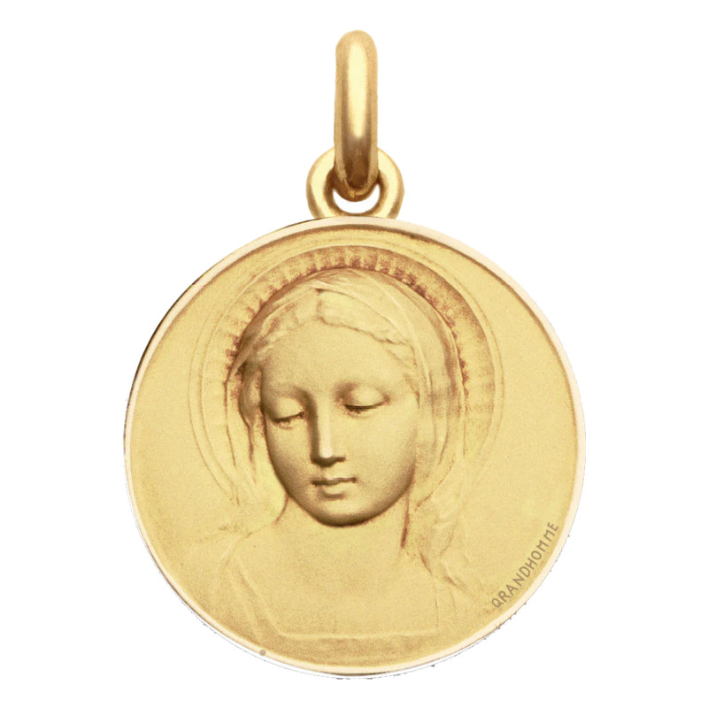 Comme cette médaille de baptême massive, en or jaune 750/1000 (18K) à l'effigie de la Virgo Amabilis : la Vierge digne d'être aimée. Une création pleine de douceur et de tendresse, la délicatesse des traits de son visage en fait une œuvre majeure de la création des médailles de la maison Becker.