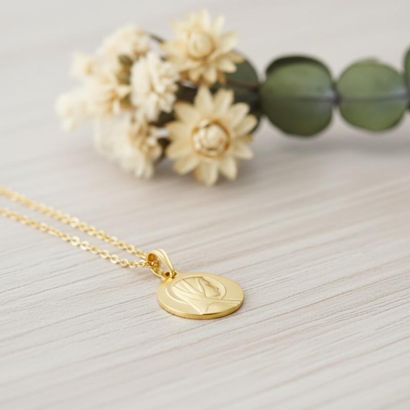 Quoi de mieux que cette délicate médaille vierge bienveillante pour une célébration marquante ! Cette dernière saura accompagner celui ou celle qui l'aura pendant de longues années en lui apportant protection, amour et raffinement. Elle est proposée en or jaune 375/1000 (9K) avec un poids moyen de 1,13 gramme ainsi qu'en or jaune 750/1000 (18K) pour un poids moyen de 1,47 gramme. De forme ronde, elle dévoile au centre l'effigie de la Vierge Marie voilée et auréolée, lui apportant une profondeur symbolique.