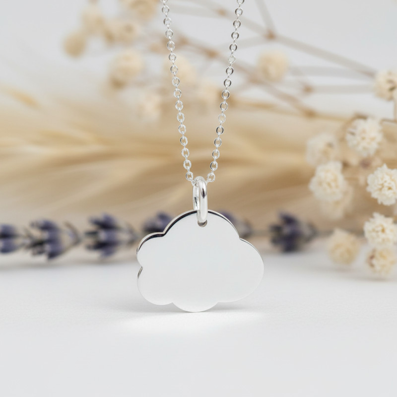 C'est avec un immense plaisir que Médaille Précieuse vous propose ce beau pendentif personnalisable en forme de nuage. Il est réalisé en or blanc de qualité 750/1000 (18K) et possède des dimensions tout à fait agréables aussi bien pour un garçon qu'une jeune fille.