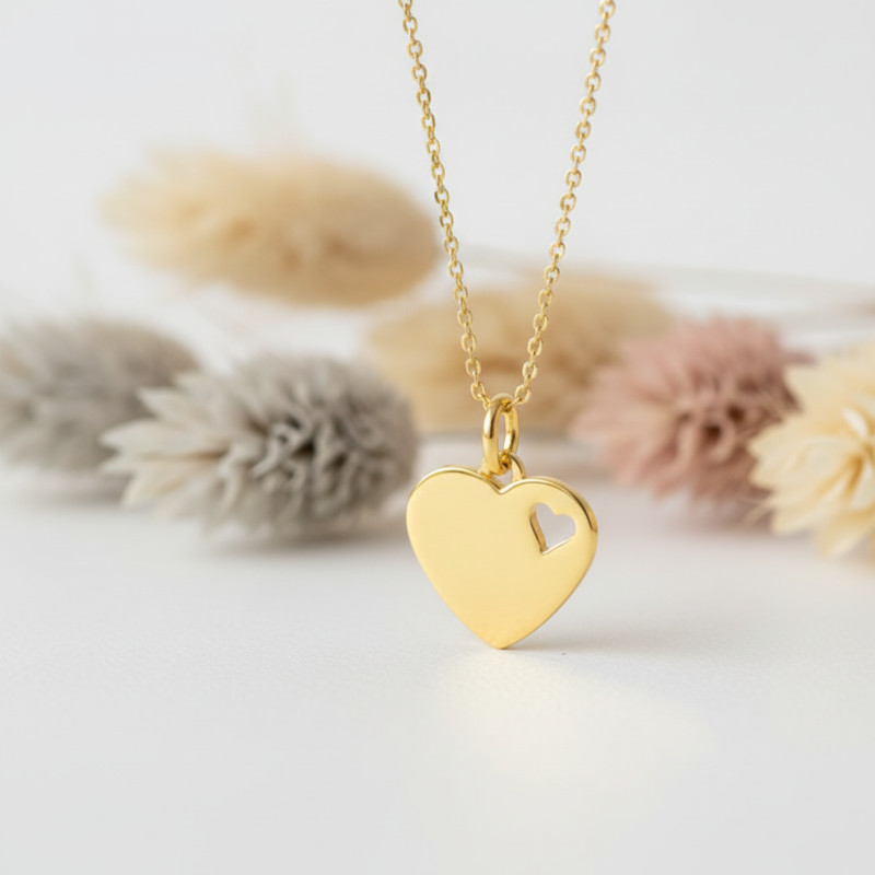 Dévoilez vos sentiments en offrant ce magnifique pendentif en forme de cœur de chez Emanessence. La particularité de ce modèle vient du petit cœur ajouré, présent sur le côté droit du bijou.