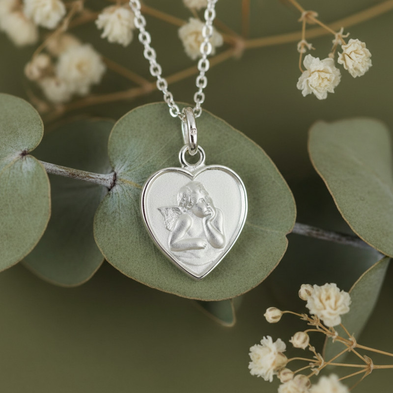 Nous vous proposons donc de découvrir l'univers de la Maison Emanessence. Elle vous fera craquer à coup sur avec cette magnifique médaille conçue en argent 925/1000. Elle prend la forme d'un cœur, vous révélant en son milieu, un adorable petit ange gardien. Ce modèle sera donc le cadeau idéal pour un baptême ou une communion. De plus, pour un cadeau encore plus symbolique, nous vous invitons à ajouter une gravure au verso de cette médaille. Cela pourra être un nom, une date ou tout autre message personnel. Sachez en revanche que tout bijou ayant subi une modification par gravure, ne sera ni repris, ni échangé. En ce qui concerne ses dimensions, ce pendentif mesure 13 mm de largeur sur 15 mm de hauteur et possède un poids d'argent de 1,30 gramme.