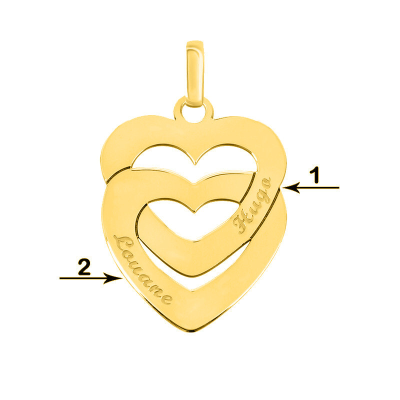 Laissez-vous séduire par le Pendentif Coeurs Entrelacés Personnalisé en Plaqué Or Jaune, un véritable hymne à l'amour éternel. Les cœurs, finement entrelacés, dansent avec élégance en révélant une texture polie et brillante. Avec une largeur de 28 mm et une hauteur de 20 mm, ce bijou léger de 2,35 grammes capture l'éclat du soleil avec ses reflets dorés. Personnalisez chaque cœur avec les noms chéris de vos proches, et laissez cette pièce devenir une déclaration unique de vos sentiments.