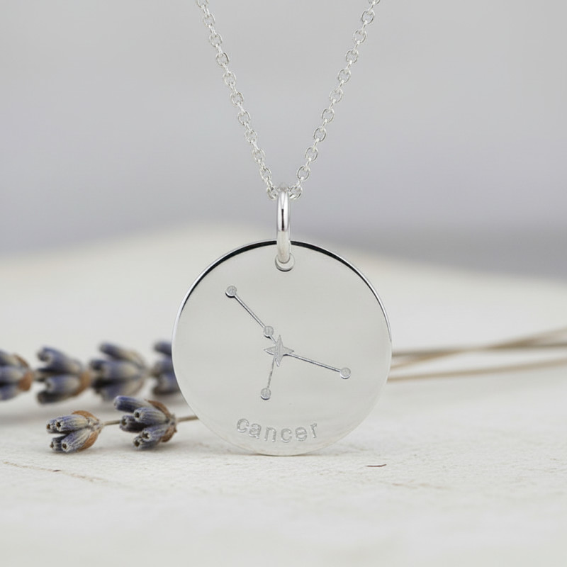En collaboration avec la maison, nous vous dévoilons ce superbe pendentif qui a été réalisé tout en argent 925/1000 rhodié. De forme ronde, ce bijou dispose d'un diamètre de 17 mm parfait pour les adultes et les enfants. Au centre, vous trouverez la représentation de la constellation du signe du cancer. Ce signe est lié aux personnes nées entre le 22 juin et le 22 juillet. La constellation ressemble à deux Y successifs et est composée en majorité d'étoiles relativement peu lumineuses. Ce pendentif sera le cadeau parfait pour une naissance ou un anniversaire.