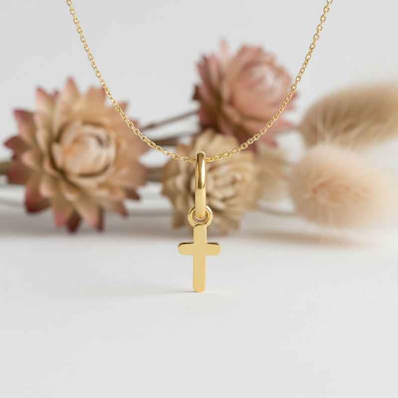 Les dimensions de 4 x 13 mm avec la bélière sont parfaites pour un accessoire discret. La croix seule dispose des dimensions suivantes : 4 x 7 mm. Il est léger, ne pesant que 0,20 gramme, et se porte confortablement au quotidien. Vous n'aurez jamais l'impression d'être encombré par ce bijou délicat.