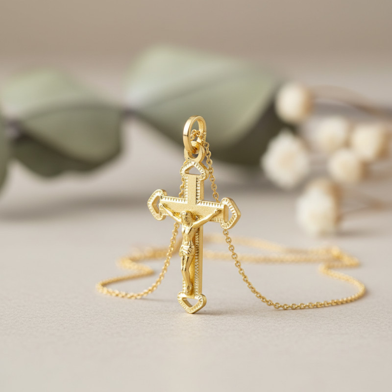 Parfait pour exprimer la piété, ce pendentif croix peut s'associer à toutes vos tenues. Il est muni d'une bélière dorée de forme ovale qui s'accroche pour vous permettre de le porter avec une chaîne de votre choix. C'est le bijou idéal qui saura magnifier votre allure en toute occasion.