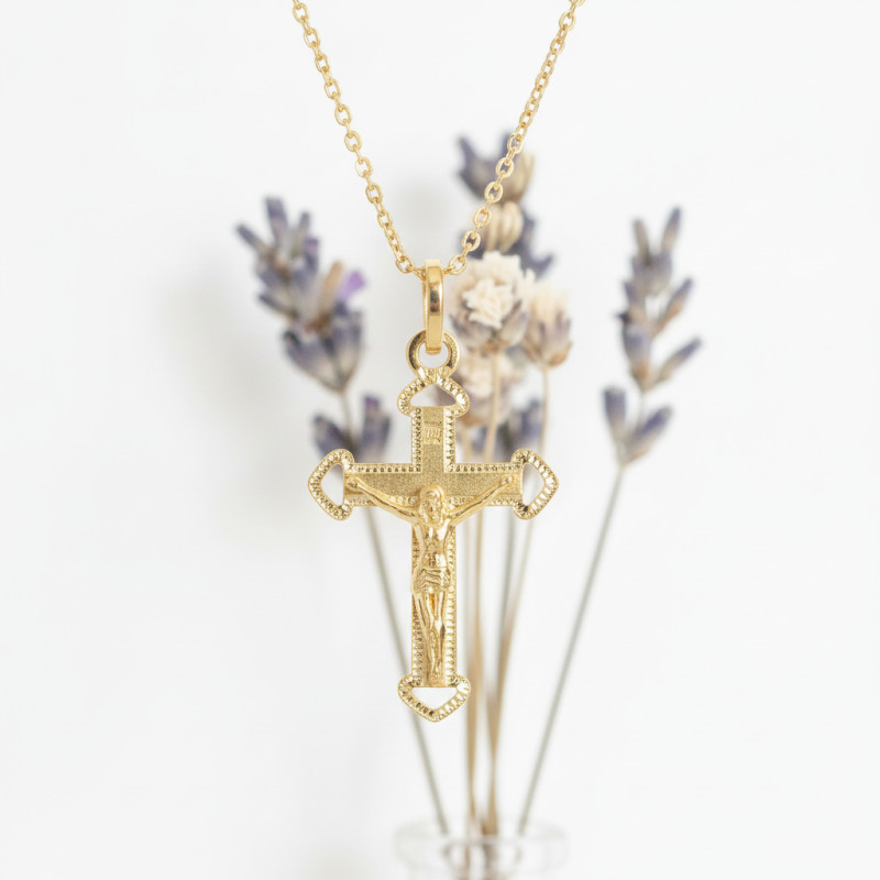 Ce pendentif croix légèrement satiné au centre et texturé sur les côtés viendra sans aucun doute marquer votre appartenance en toute élégance. Avec une largeur de 23 mm, il vous garantit un port confortable sans encombrement. Il est muni d'une bélière pour vous permettre de glisser à la chaîne de votre choix. Ce bijou à caractère religieux fera un excellent cadeau à offrir à un nouveau baptisé ou à un croyant.