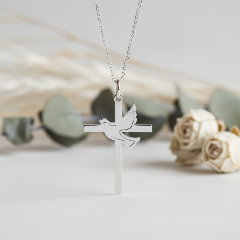 Ne ratez pas le charme spirituel et symbolique de ce fascinant pendentif croix fait en or blanc. Ce dernier saura s'accorder avec toutes vos tenues grâce à sa couleur argentée et fera également une bonne idée de cadeau à offrir à une personne chère. Il se compose d'une croix et d'une colombe qui lui apportent un aspect subtil et moderne. Ce bijou mesure 20 mm de hauteur et est proposé en deux qualités.