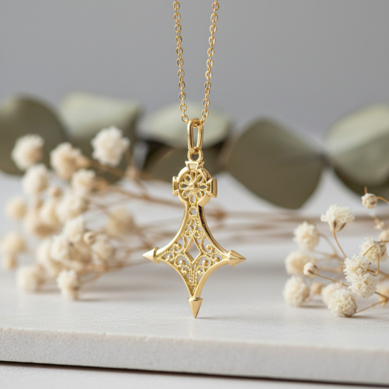 Ce ravissant pendentif croix complétera avec délicatesse vos tenues, des plus décontractées aux plus sophistiquées. Fabriqué en or jaune 750/1000 (18K), il dévoile un design en forme de croix du Sud qui fait toute son originalité. Cette dernière présente des courbes joliment imbriquées les unes dans les autres avec un style ajouré et des pointes polies triangulaires et plates. Plus connue sous le nom de croix d'Agadez, elle est la plus petite des constellations d'étoiles de l'hémisphère sud et symbolise l'amour.