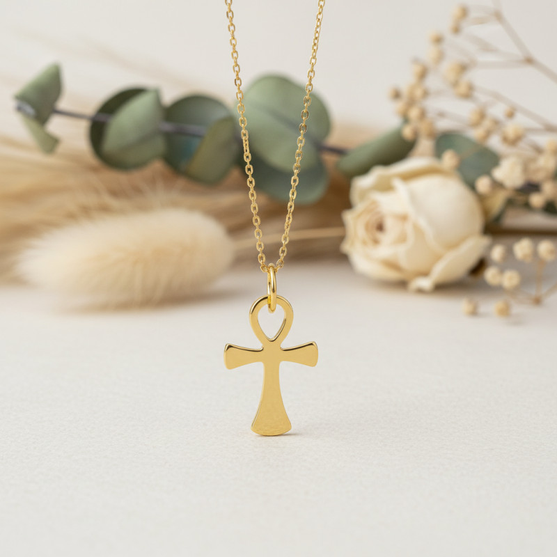 Nous vous dévoilons ce superbe pendentif croix égyptienne qui présente une couleur dorée et une finition polie. Communément appelé « croix ankh » ou « croix ansée », cette croix égyptienne symbolise le don divin de la vie éternelle et de l'immortalité. Elle était l'attribut des dieux de l'Égypte Antique, le plus souvent associée à la déesse Isis. Ce bijou est fabriqué en or jaune 375/1000(9K) afin de perdurer dans le temps et dispose d'un poids d'or de 0,28 gramme.