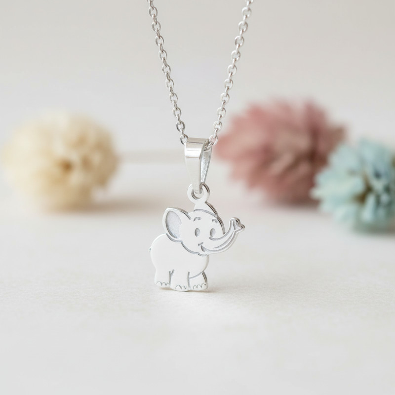 Ce doux pendentif prend la forme d'un doux éléphant réalisé entièrement en or blanc 375/1000 (9K). Ce pendentif en forme d'éléphant ravira toutes les petites passionnés par les animaux. Maintenu par une bélière en triangle, le pendentif peut être porté par une chaîne de votre choix.