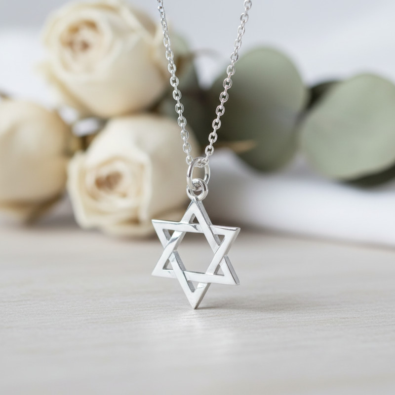 Le pendentif que nous vous proposons aujourd'hui est fabriqué en argent 925 et présente une étoile de David. Celle-ci se compose de deux triangles équilatéraux et superposés, dont un dirigé vers le haut et l'autre vers le bas. Maguen David en hébreu, sceau de Salomon ou encore étoile de Sion, différentes appellations, mais un seul symbole : la sagesse et la vie. Passivé, le pendentif fera preuve d'une résistance accrue à l'oxydation et aux rayures vous permettant de le porter tous les jours sans perdre son rayonnement.