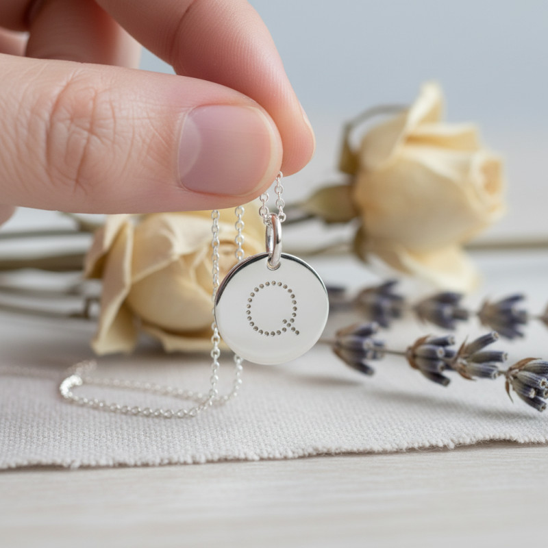 Nous vous proposons donc de découvrir ce délicat pendentif conçu en argent massif 925/1000. Ce modèle est issu d'une collection mettant à l'honneur les différentes lettres de l'alphabet. Il vous dévoile donc en son cœur l'initiale Q, réalisée à partir de petits trous rapprochés, directement perforés dans la matière. Ce pendentif fera une très belle idée cadeau pour toutes les personnes dont le prénom commence par un Q, comme Quentin ou Quitterie. En ce qui concerne les dimensions de ce modèle, il mesure 12 mm de diamètre et possède un poids d'argent de 0,65 gramme.