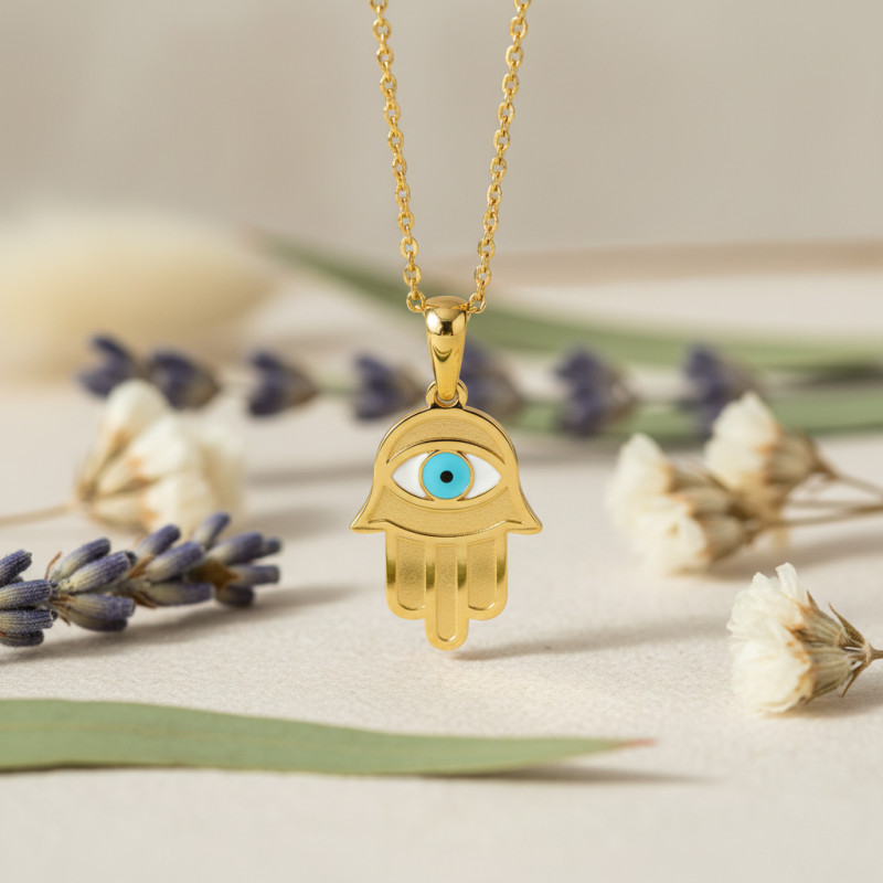 Pour rehausser votre style, nous vous recommandons ce beau pendentif Main de Fatima. Ce bijou est fabriqué en or jaune 750/1000 (18K) et présente une belle couleur dorée qui se mariera parfaitement à toutes vos tenues. Il arbore la forme de la main de Fatima et présente sur sa face avant un œil délicatement orné de laque bleu, blanc et noir. Ce pendentif affiche 13 mm de longueur et évoque la force, l'espoir et la protection contre les mauvaises ondes.