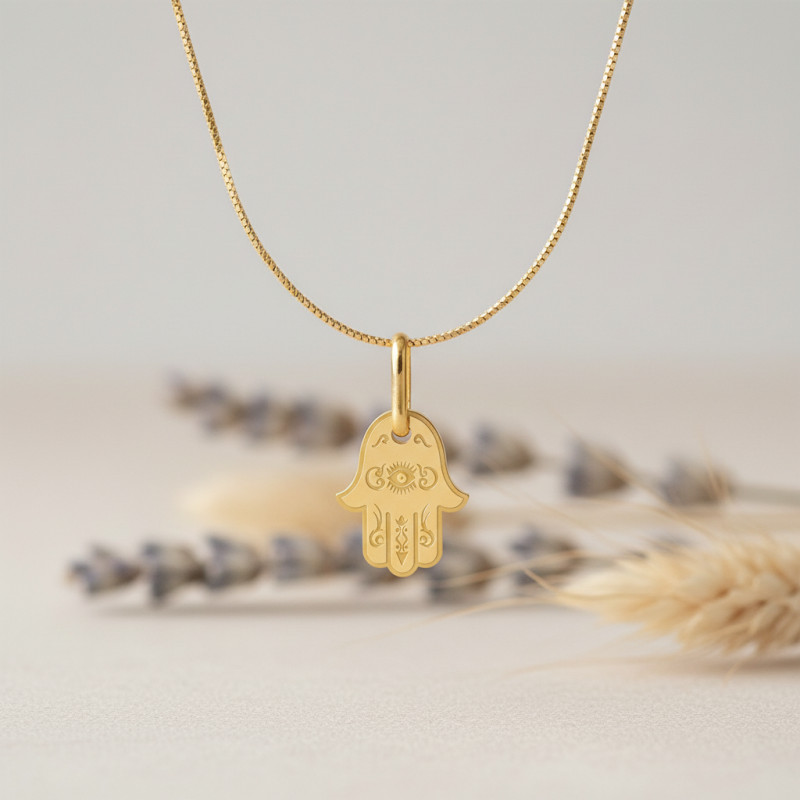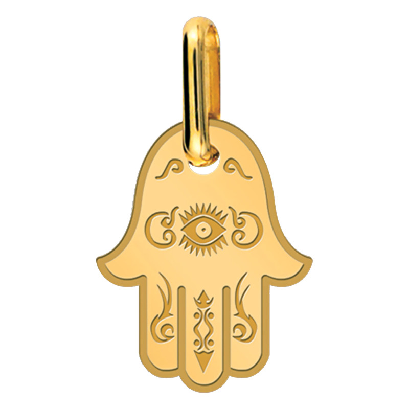 Découvrez ce ravissant pendentif main de Fatma fait en or jaune 375/1000 (9K), garantissant une utilisation durable. Unisexe, il arbore une belle couleur dorée qui se trouve rehaussée par un fini brillant, accordant au bijou un aspect éclatant. Avec un poids d'or moyen de 0,50 gramme, cette main de Fatma vous assure un port léger et confortable au quotidien. Porteuse de forts sens, elle vous apportera également un caractère spirituel.