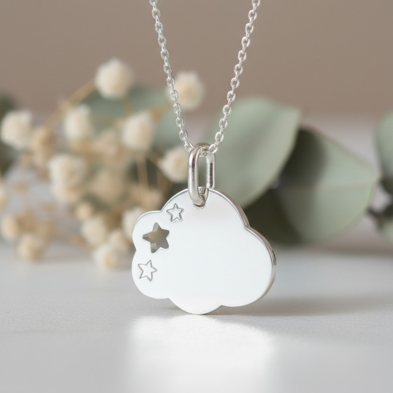 Laissez-vous succomber par cette adorable médaille de baptême en forme de nuage qui vous est proposée par la marque française Lucas Lucor. Un bijou idéal pour les enfants sur lequel on retrouve 3 petites étoiles dont celle du milieu est ajourée. Ce bijou en or blanc mesure 13 mm de hauteur et 16 mm de largeur. Vous pourrez parfaitement l'offrir pour un baptême, une naissance ou un anniversaire.
