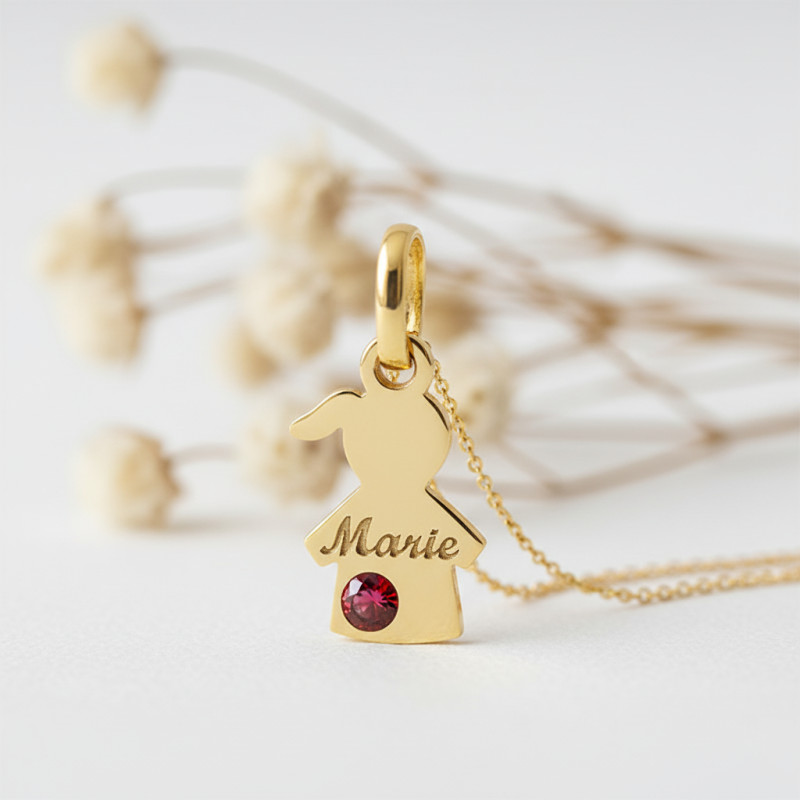 Vous pouvez faire graver le prénom de votre choix avec la police Anglaise uniquement. A chaque mois de naissance est associé une pierre :