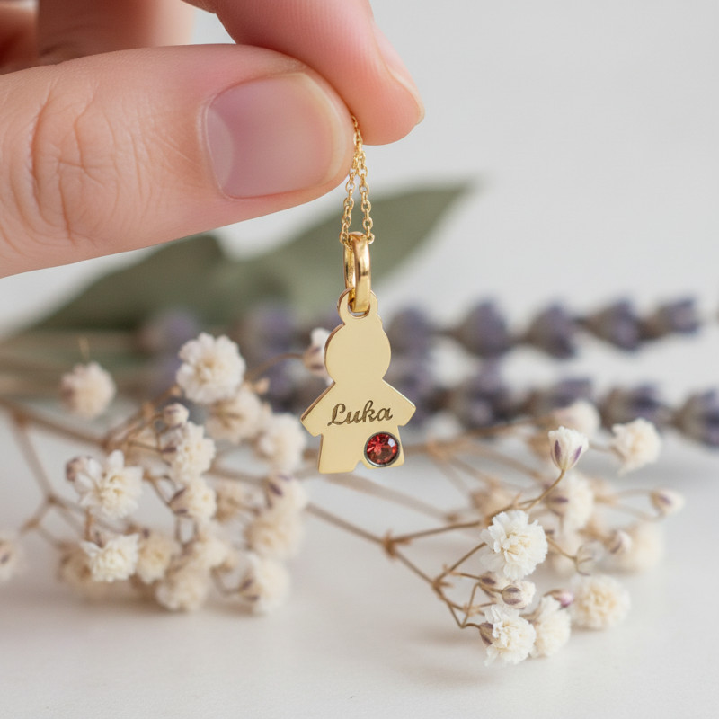 Vous pouvez faire graver le prénom de votre choix avec la police Anglaise uniquement. A chaque mois de naissance est associé une pierre :