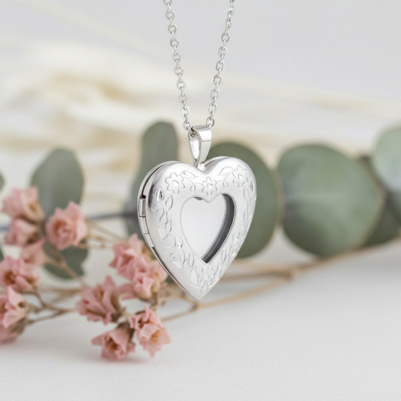 Laissez-vous charmer par ce pendentif porte photo qui vous sublimera à chaque instant. Argenté, il prend la forme d'un coeur magnifié par une finition satinée. Il est entièrement façonné en argent 925 et dévoile de charmants motifs attrayants. Il s'agit de fleurs finement gravées autour d'un coeur avec des bordures à l'aspect cousu. Celui-ci est incroyablement lumineux et vous apportera une touche captivante. De plus, ce bijou peut contenir une photo, ce qui vous permettra d'avoir la personne de votre choix avec vous à chaque instant.