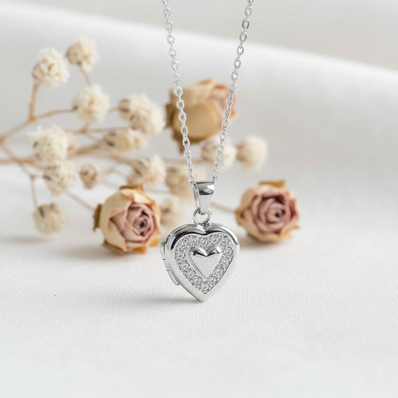 Parmi ses belles créations, nous avons choisi pour vous, ce ravissant pendentif porte photo coeur qui parera à merveille votre cou et vous mettra au centre des regards admiratifs. Il est conçu avec une grande finesse en argent 925 rhodié afin de perdurer dans le temps sans perdre son allure du premier jour. Présentant des finitions polie et satinée élaborées avec soin, ce pendentif est orné de 14 zircones blanches de 1,50 mm de diamètre qui forment un cœur creux mettant en avant sa beauté.