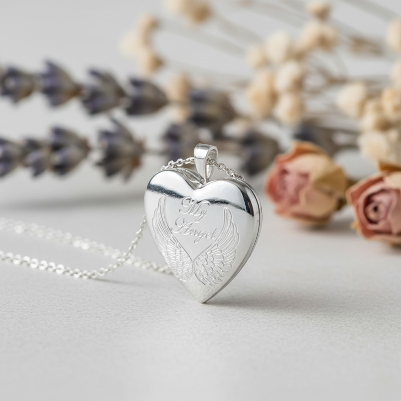 Original et romantique, ce pendentif porte photo coeur présente un design envoûtant. Il est conçu en argent 925 rhodié et arbore un mélange sublime de finitions polie et satinée qui mettent en valeur avec couleur argentée. Ce médaillon photo est décoré avec une magnifique gravure de deux ailes d'anges déployées qui symbolisent la protection et la bénédiction, mais aussi la beauté, l'innocence et la perfection. Ce dernier est complété par la mention « My Angel » gravée avec une belle police.