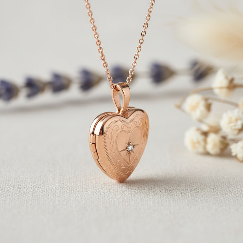 Nos équipes ont choisi donc de vous présenter ce merveilleux pendentif porte photo qui vous sublimera une fois acquis. En forme de cœur, il est fabriqué en or rose 375/1000 (9K) avec une finition polie. Il mesure 12 mm de largeur avec une hauteur incluant sa bélière de 18 mm. D'un diamètre de 1,20 mm, un scintillant diamant de 0,01 carat vient orner l'étoile du petit cœur rainuré placé au centre pour un effet plus brillant. Ce dernier est entouré par un design texturé qui rehausse le charme du pendentif.