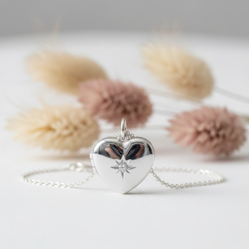 Elle a choisi de vous dévoiler ici sa collection de pendentif porte photo qui va vous plaire ! Comme ce charmant modèle réalisé entièrement en argent 925 rhodié pour garder sa couleur des années. Ce pendentif prend la forme d'un coeur et nous dévoile une étoile gravée au centre de son recto. Vous aurez l'agréable surprise de trouver un petit oxyde de zirconium serti au centre de l'étoile. Vous pourrez glisser les photos de votre choix à l'intérieur de ce médaillon photo.