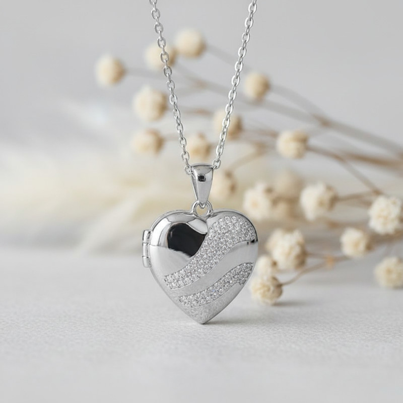 Nous avons choisi ce charmant pendentif photo coeur pour vous. Soigneusement travaillé, il est réalisé en argent 925 rhodié, ce qui lui confère une résistance et une brillance indéniables. De forme cœur, il est relevé par une finition polie apportant cet éclat qui ne passera pas inaperçu. À la surface, il est délicatement orné d'oxydes de zirconium brillants, ce qui rehaussera votre allure en toute occasion. Il affiche 25 mm de hauteur sur 19 mm de largeur et il se combinera avec tous les bijoux de votre choix.