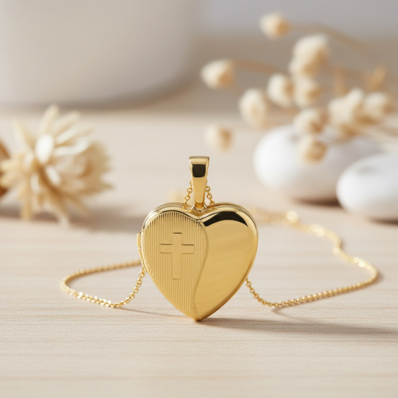 Ce cœur partagé en deux : une croix chrétienne se dessine au milieu des rayures verticales sur la partie droite du cœur, tandis que la partie gauche est lisse. Comptez un poids d'or moyen de 0,87 gramme. Le bijou accueille une bélière ovale et épousera parfaitement les courbes de la chaîne qui l'accompagnera ! Alors si vous souhaitez porter ce ravissant pendentif en collier, venez découvrir notre espace dédié aux chaines en or. Choisissez un modèle dont le poids est égal ou supérieur à celui du bijou.