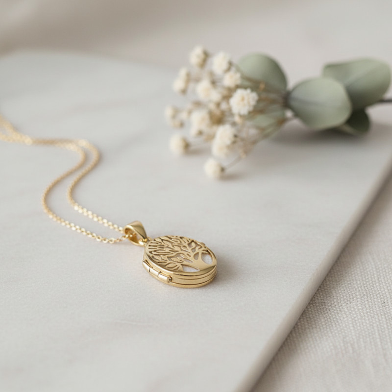 Nous vous proposons ce sublime pendentif réalisé en or jaune 375/1000 (9K). Il s'agit d'un ravissant pendentif photo vous dévoilant sur sa face recto un élégant arbre de vie ajouré. Symbole d'amour et de protection, l'arbre de vie est un élément emblématique de la bijouterie. Véritable porte-bonheur, ce bijou fera un magnifique cadeau à offrir à une personne qui vous est chère. Pour une touche plus symbolique, vous pourrez bien sûr placer une photo à l'intérieur de ce pendentif, comme le portrait d'un proche ou de votre bien aimé(e). En ce qui concerne ses dimensions, ce modèle mesure 30 mm de hauteur sur 16,5 mm de largeur et possède un poids d'or moyen de 3,20 grammes.