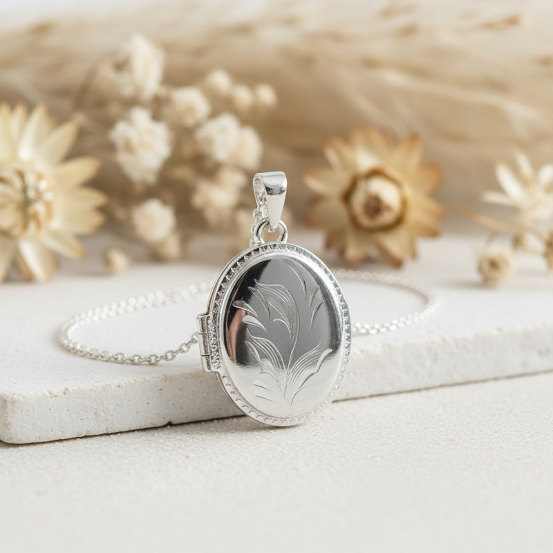 Comme avec ce beau pendentif porte photo qui va vous faire succomber à coup sûr ! Ce pendentif a été réalisé tout en argent 925 pour vous offrir une jolie couleur grisée. Il dispose d'une forme ovale et nous dévoile sur le recto une gravure d'une fleur apportant tout le charme au bijou. Ce médaillon photo sera un beau cadeau à réaliser à un proche pour un anniversaire par exemple.