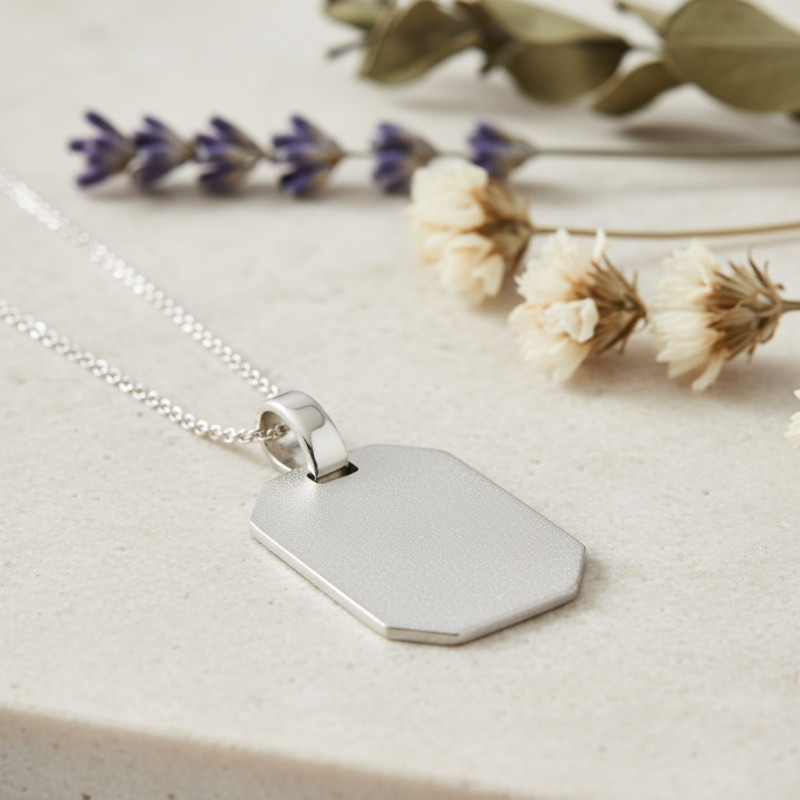 Tombez sous le charme de ce sublime pendentif plaque arborant une forme octogonale. Il saura apporter une touche d'élégance à votre style vestimentaire et se trouve magnifié par une charmante finition sablée. Confectionné en argent 925, ce bijou mixte dispose d'une bélière polie de 2,50 mm de diamètre et mesure 22,50 mm de longueur incluant cette dernière et 18 mm sans. Disposant d'une épaisseur de 1 mm et d'une largeur de 13 mm, il sera du plus bel effet à votre cou.
