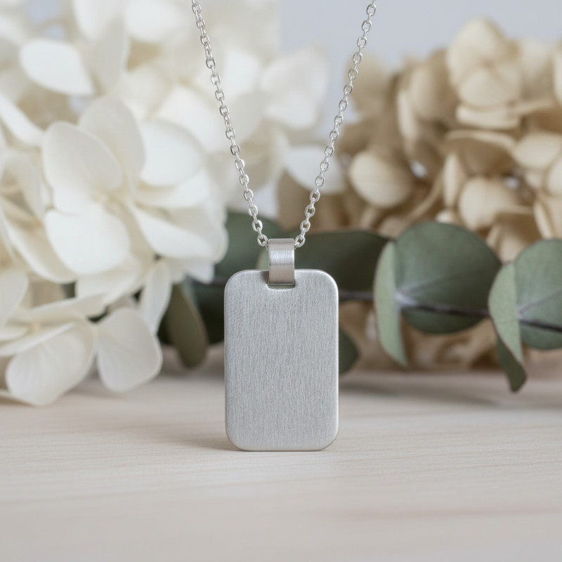 Nous vous recommandons ce merveilleux pendentif plaque qui arbore une forme rectangulaire. Il est entièrement fait à partir d'argent 925 et se trouve mis en valeur par une finition brossée. Ce dernier se pare d'un design assez simpliste et arbore des contours arrondis pour un rendu plus esthétique. Pouvant être porté aussi bien avec une tenue simple qu'une allure élégante, ce pendentif de 30 mm de longueur, 18,50 mm de largeur et 1 mm d'épaisseur saura vous démarquer.