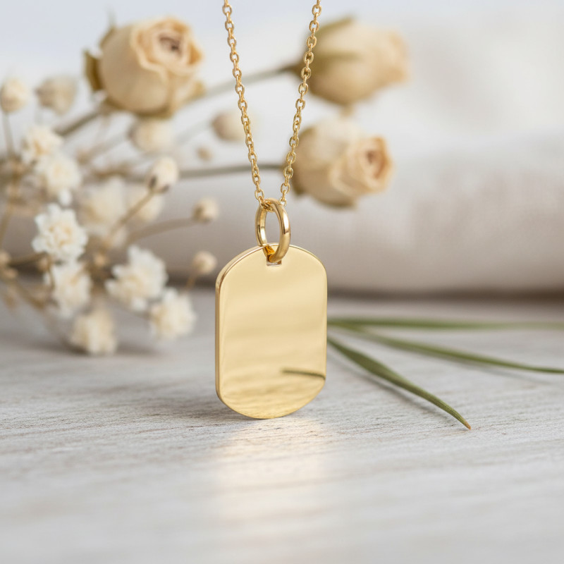 Médaille Précieuse vous propose ce pendentif à graver en forme de tonneau. Ce nom lui est donné en raison de ses extrémités arrondies. La plaque mesure 18 mm de hauteur et 14 mm de large. La bélière mesure 8 mm. Le pendentif est proposé par Emanessence en or jaune 375/1000 (9K) ou 750/1000 (18K) selon votre choix. Son prix varie en fonction de la qualité d'or choisie :
