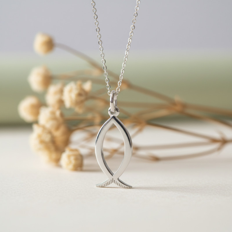 Inspiré par l'ancien symbole chrétien de l'Ichthus, ce pendentif se démarque par sa finesse et son symbolisme profond. L'Ichthus, représenté par deux arcs qui se croisent pour former le contour d'un poisson, est une icône secrète utilisée par les premiers chrétiens pour s'identifier et échanger des messages en toute discrétion. L'argent 925, utilisé dans la conception de ce bijou, n'est pas qu'un matériau esthétique, c'est un gage de pureté et de qualité, transformant ce pendentif en un véritable trésor intemporel.