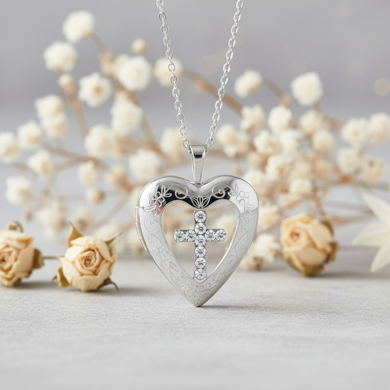 Nos équipes vous invitent donc à opter pour ce magnifique pendentif porte photo coeur au design raffiné et moderne. D'une largeur de 20 mm et d'une hauteur totale de 25 mm, ce bijou au fort symbole présente au centre une croix ornée de dix cristaux de 2 mm de diamètre qui apporte du caractère à l'ensemble. Ces derniers sont de couleur blanche et sont sertis clos. Le pendentif est décoré par un design fleuri sur les bordures. Le tout placé sur une surface polie pour un rendu durable.