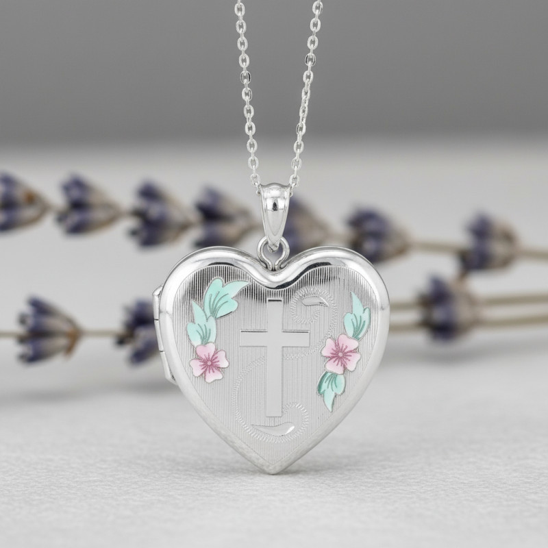 Laissez-vous séduire donc par les bijoux éblouissants de la marque que nous avons choisi délicatement pour vous tel ce superbe pendentif porte photo. En forme de cœur, ce dernier émerveille par son éclat dû à sa finition polie et à son design épuré. Il arbore des stries avec deux fleurs décorées sur les deux côtés entourant une croix gravée au centre. Fabriqué en argent 925, ce joli pendentif affiche une hauteur totale de 30 mm et une largeur de 24 mm.