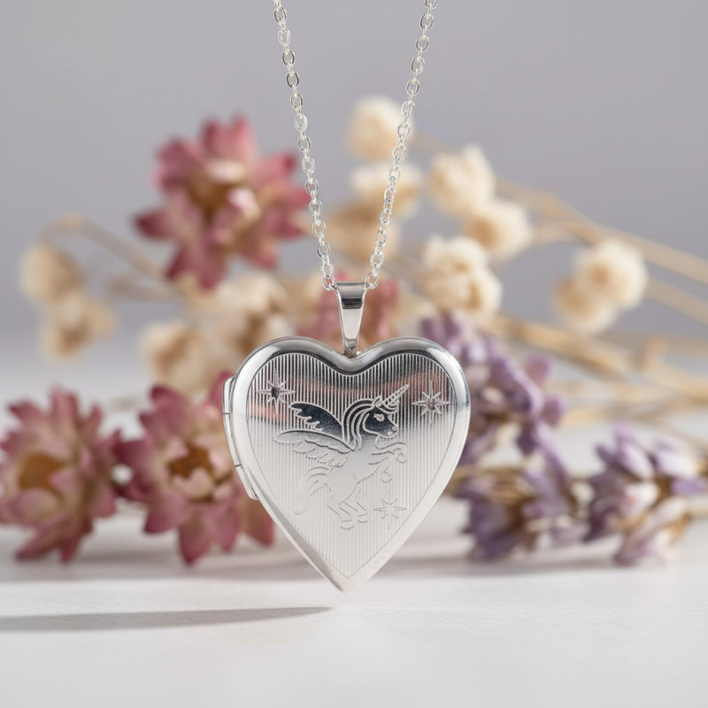 Nous avons choisi ce fabuleux pendentif porte photo pour vous. Charmant et élégant, il vous accordera une note captivante. Il est façonné en argent 925 et se trouve plaqué au rhodium afin de lui assurer une grande résistance à la corrosion. Il prend la forme d'un coeur orné de stries verticales qui lui accordent une note élégante. De plus, il est sublimé par un motif licorne accompagnée de 3 étoiles qui brillent sur une finition polie. Ce bijou argenté complétera vos tenues à merveille. Vous pourrez l'offrir à une personne proche en témoignage de votre affection.