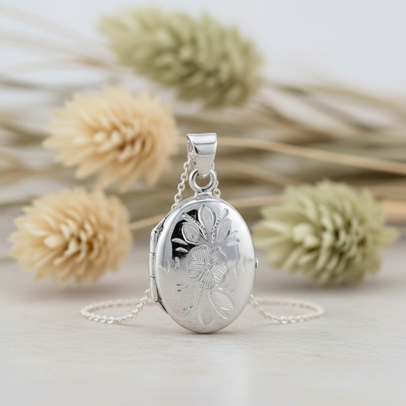 Nous avons le plaisir de vous dévoiler ce charmant pendentif porte photo de couleur grise. Il est conçu en argent 925 et se trouve embelli par une finition polie qui accentue son charme. Ce dernier dispose d'une gravure de fleurs sur sa face avant qui lui accordent une touche florale et vous permettra de le porter en toute saison. Il vous sera possible d'y glisser la photo de votre choix afin de le rendre plus personnel.