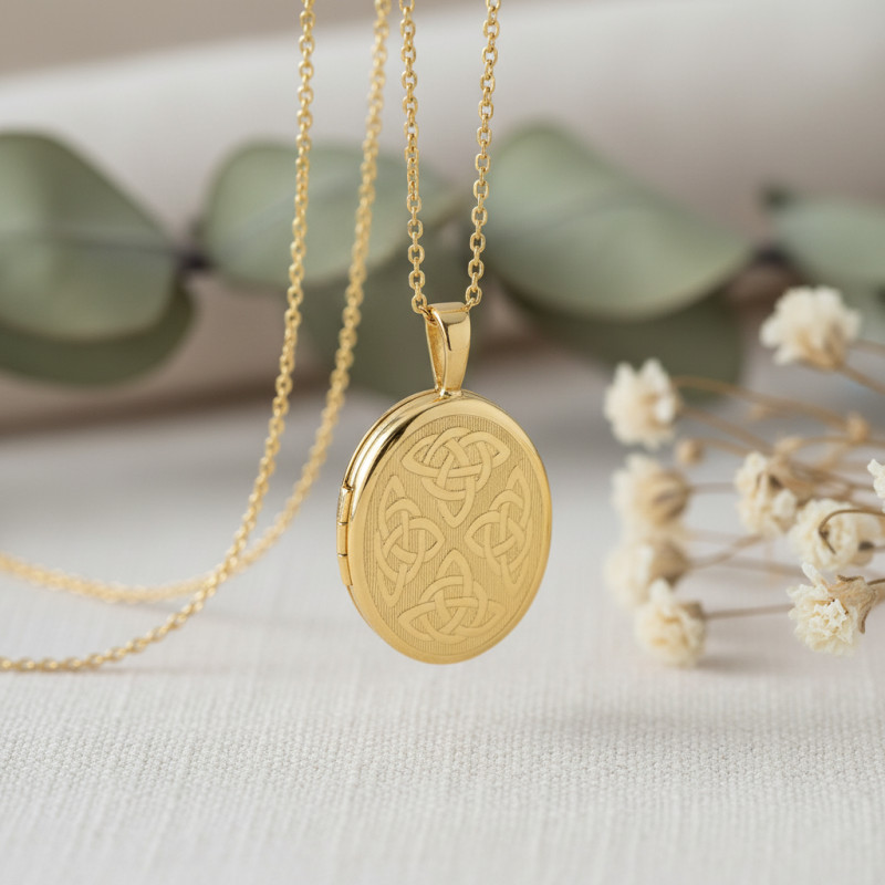 Parmi ses magnifiques modèles, nous avons choisi pour vous ce ravissant pendentif photo ovale qui ne manquera pas de vous mettre au centre des regards admiratifs. Il est conçu en or jaune 375/1000 (9K) et arbore une belle combinaison de finitions qui mettent l'accent sur sa beauté. Doté d'un contour poli, le centre strié porte une belle gravure de motifs celtiques qui lui accordent plus de charme.