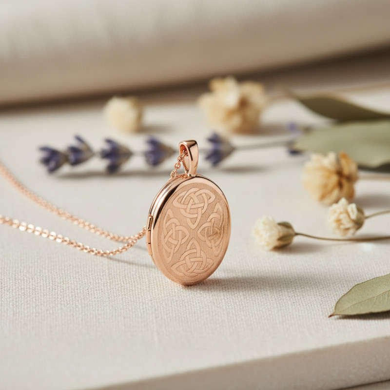 Pour vous parer avec élégance, nous vous recommandons ce ravissant pendentif porte photo qui se pare d'une couleur rose doré. Il est entièrement réalisé en or rose 375/1000 (9K) et présente des finitions brillante et rainurée pour plus de charme. Grâce à son ouvrant sur charnière, ce dernier vous permettra d'y ranger une photo que vous souhaiterez avoir avec vous à chaque déplacement. Pour plus de distinction, ce pendentif arbore sur sa face avant un motif celtique qui vient compléter son design assez minimaliste qui magnifiera toutes vos tenues.
