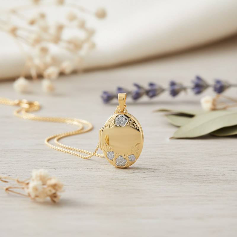 Succombez au charme de ce sublime pendentif porte photo de couleur dorée. Il est fabriqué à partir d'or jaune 375/1000 (9K) dont le poids d'or moyen est de 4,76 grammes. Le design fleuri au ton argenté de ce bijou lui confère une touche raffinée qui vous mettra en valeur à coup sûr. Sachez que vous pourrez l'offrir en toute occasion à une personne que vous appréciez.