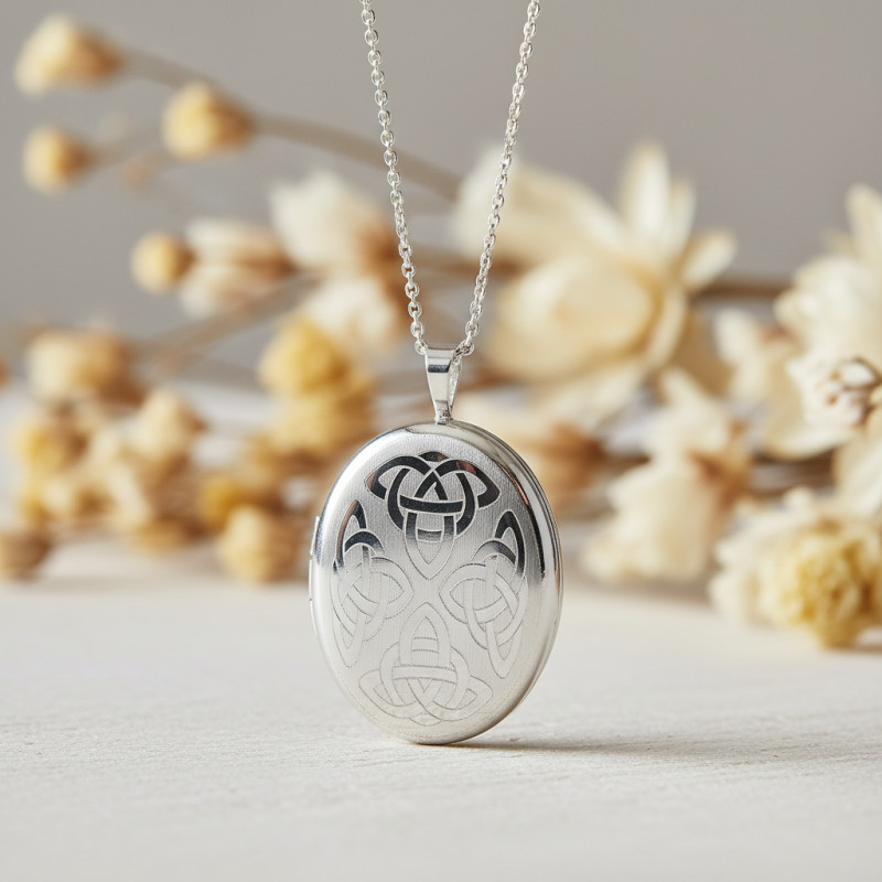 Nos équipes vous proposent donc de vous faire plaisir ou de faire plaisir à un être cher grâce à ce délicat pendentif porte photo. Sa forme ovale est soulignée par une finition polie et des lignes satinées qui apportent au bijou une note raffinée. Ce pendentif en argent 925 mesure 20 mm de largeur et 32 mm de hauteur, bélière comprise. Il est magnifié par quatre motifs celtiques connus sous l'appellation Triquetra qui lui accorde un caractère plus affirmé.