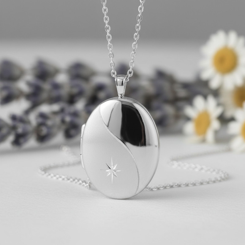 La marque et nos équipes vous dévoilent donc ce merveilleux pendentif porte photo de forme ovale qui vous fascinera une fois porté. Celui-ci est réalisé en argent 925 et présente au centre une bande texturée en forme de vague qui le sépare en moitiés. La première se pare d'une finition polie et la deuxième satinée est ornée d'une étoile rose des vents. Ce pendentif de 20 mm de largeur affiche une hauteur incluant sa bélière de 32 mm.