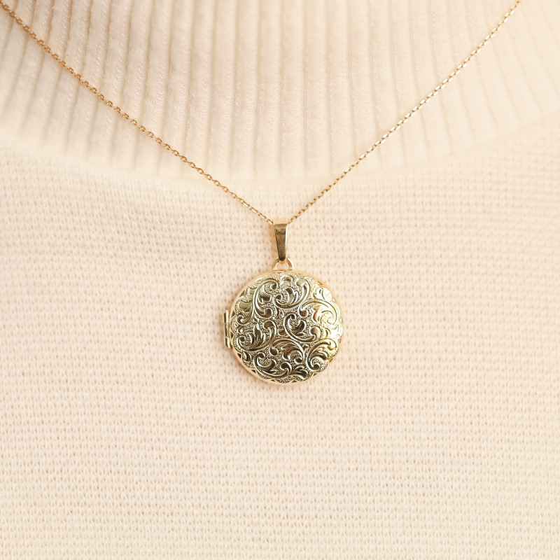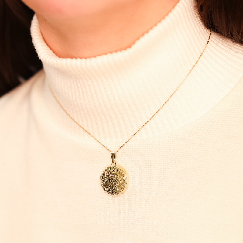 Découvrez le Pendentif Porte Photo Rond Arabesque en Or Jaune 375, une création précieuse pour la Femme moderne. Ce bijou, d'un diamètre de 22 mm, est une délicate ode à la féminité, abritant en son sein des secrets chéris. Forgé dans un Or Jaune de 375/1000 (9K), il danse avec la lumière, reflétant une lueur chaleureuse. Avec un poids aérien de 2,73 g, ce pendentif est une caresse d'or sur la peau, une promesse de style intemporel. Gravure possible pour transformer ce bijou en pièce unique, à votre image.