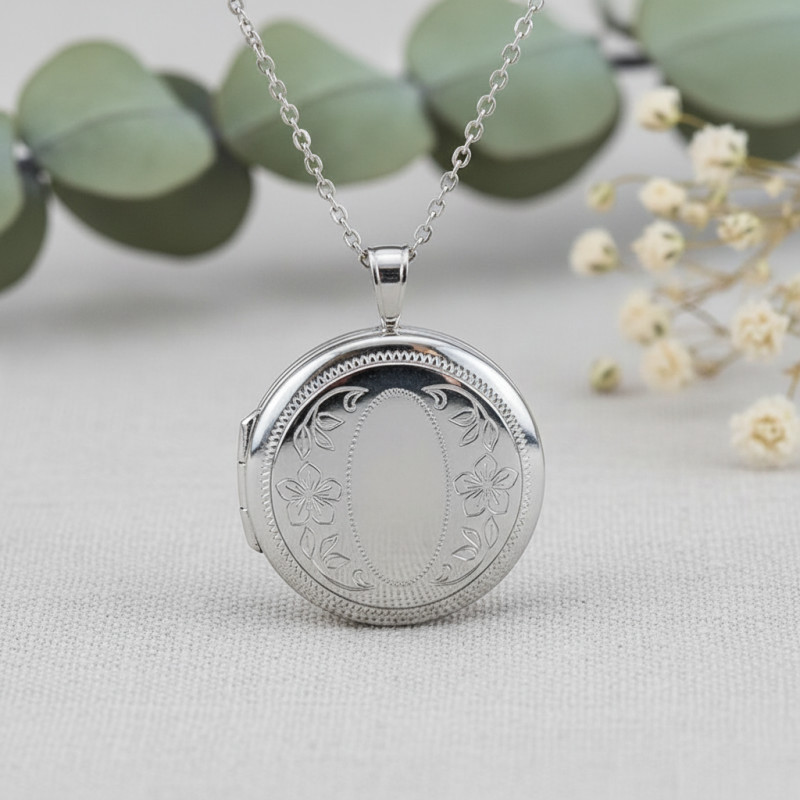 Parmi ses belles créations, nous avons sélectionné pour vous ce joli pendentif porte photo rond qui est conçu pour magnifier votre cou et vous apporter une touche de raffinement. Il est réalisé en argent 925 rhodié et se pare d'une belle couleur argentée mise en valeur par une finition polie. Sa face avant comporte une ravissante gravure florale qui rappelle la broderie traditionnelle. Quant à son dos, il est fini avec un délicat fini satiné qui contraste joliment avec sa teinte.