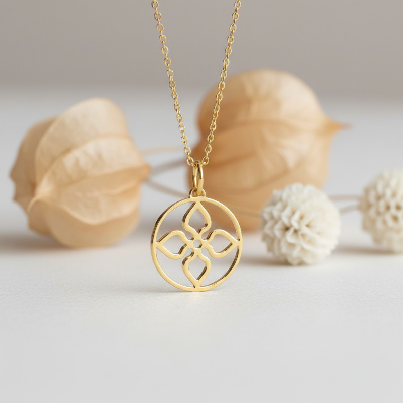 Le modèle que nous vous proposons est un pendentif entièrement conçu en or jaune 750/1000 (18K). Raffiné et délicat, ce modèle nous dévoile au centre de son contour de forme ronde, un motif ajouré rappelant la forme d'une fleur ou d'un trèfle à quatre feuilles. Le tout formant une élégante rosace au design épuré et minimaliste. Ce pendentif fera un très beau cadeau à offrir lors d'occasions spéciales, comme un anniversaire ou la Saint Valentin. C'est un bijou intemporel que votre bien aimée pourra porter durant de nombreuses années. Vous pouvez également le porter avec d'autres modèles afin de le jouer en accumulation. En ce qui concerne les dimensions du pendentif, il mesure 13 mm de diamètre pour un poids d'or de 0,35 gramme.