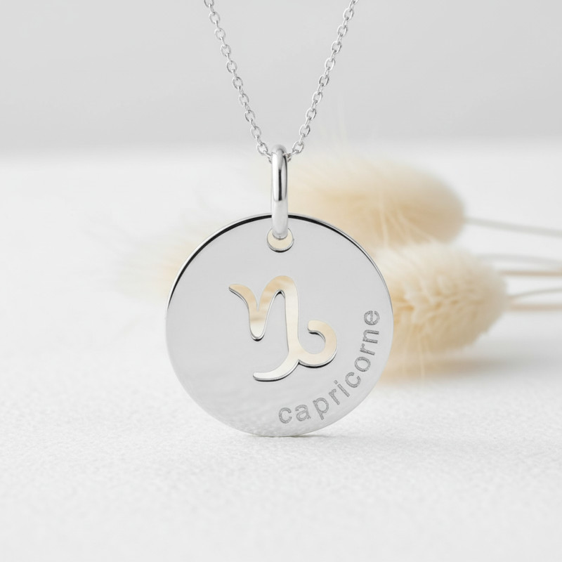 Nous sommes certains que vous allez adorer cet élégant pendentif signe du zodiaque qui a été spécialement conçu en argent rhodié 925/1000. Il est réalisé avec une forme ronde et dispose d'un diamètre de 15 mm. En son centre, vous aurez le plaisir de trouver la représentation du symbole du signe du Capricorne. Le capricorne est lié aux personnes nées entre le 22 décembre et le 20 janvier, parfait pour en faire un présent idéal. Enfin, comptez un poids d'argent moyen pour ce bijou de 0,90 gramme.