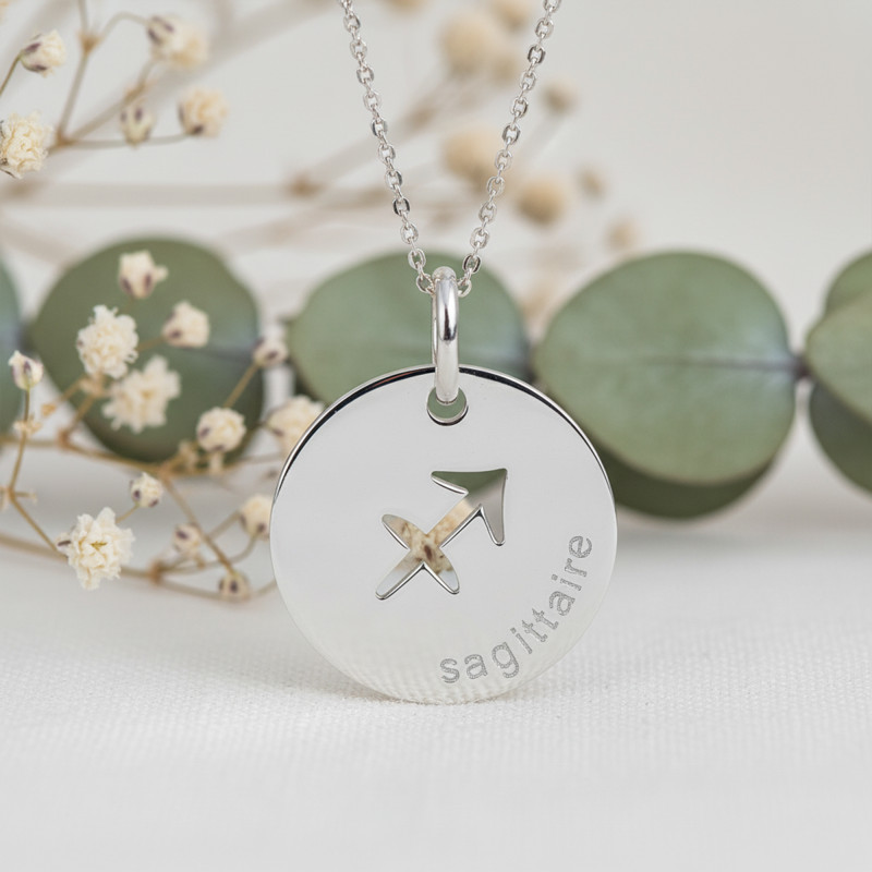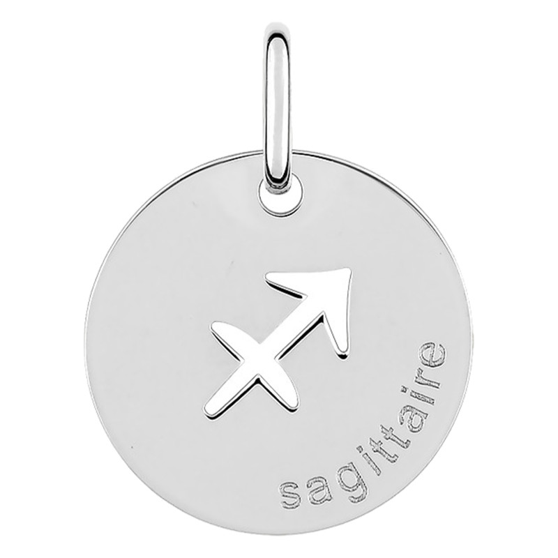En collaboration avec la maison, nous vous proposons ce charmant pendentif signe du zodiaque qui est réalisé tout en argent rhodié 925/1000. Il prend une forme ronde et vous propose un diamètre de 15 mm parfait pour un enfant et un adulte. Il vous propose un motif en son centre représentant le symbole du signe du Sagittaire. Ce signe est lié aux personnes nées entre le 23 novembre et le 21 décembre. Ce bijou sera un présent idéal pour une personne née pendant cette période pour un anniversaire ou une naissance. Enfin, comptez un poids d'argent moyen de 0,90 gramme.