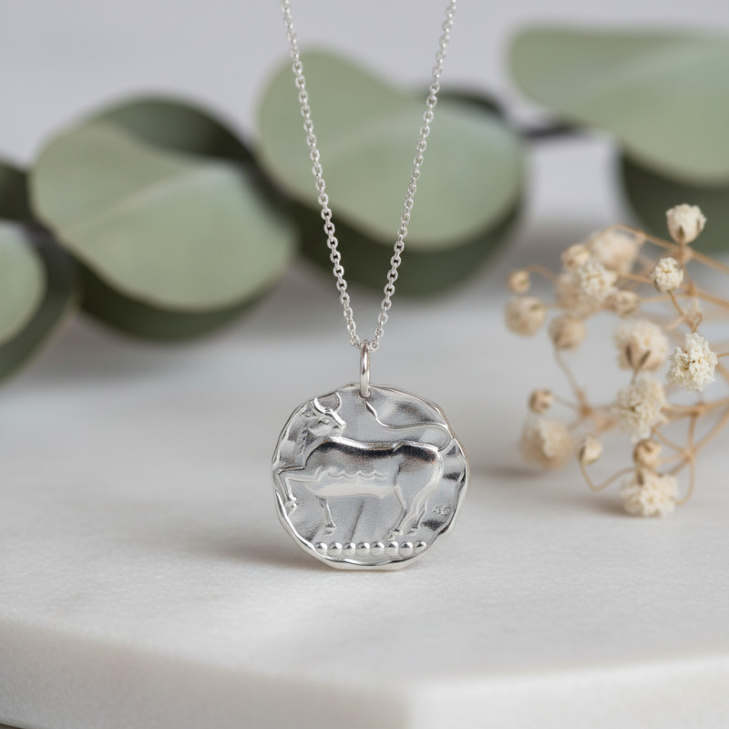 Avec un diamètre de 24 mm et un poids de 6 grammes, ce pendentif se révèle être un bijou à la fois élégant et facile à porter au quotidien. Il rend hommage à la nature stable et généreuse des natifs du Taureau, un choix parfait pour ceux qui souhaitent affirmer leur force tranquille et leur sensualité avec sophistication. Sa bélière ronde se glisse aisément sur une chaîne, ajoutant une touche de charme intemporel à votre style.
