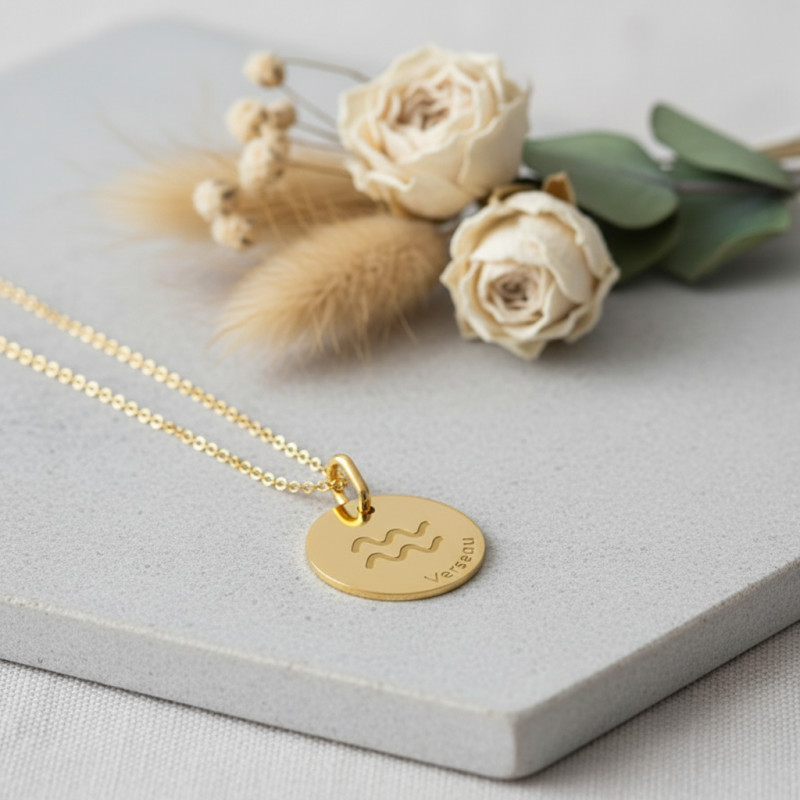 Elle vous propose ici, de craquer pour ce somptueux pendentif signe astrologique réalisé en or jaune 375/1000 (9K) ou 750/1000 (18K). Ce pendentif célèbre le signe du Verseau qui est représenté à travers son symbole. Le signe du Verseau représente les natifs du 20 janvier au 19 février. La médaille dispose d'un diamètre de 16 mm et comporte une bélière de forme ovale pour y passer facilement une chaîne en or.
